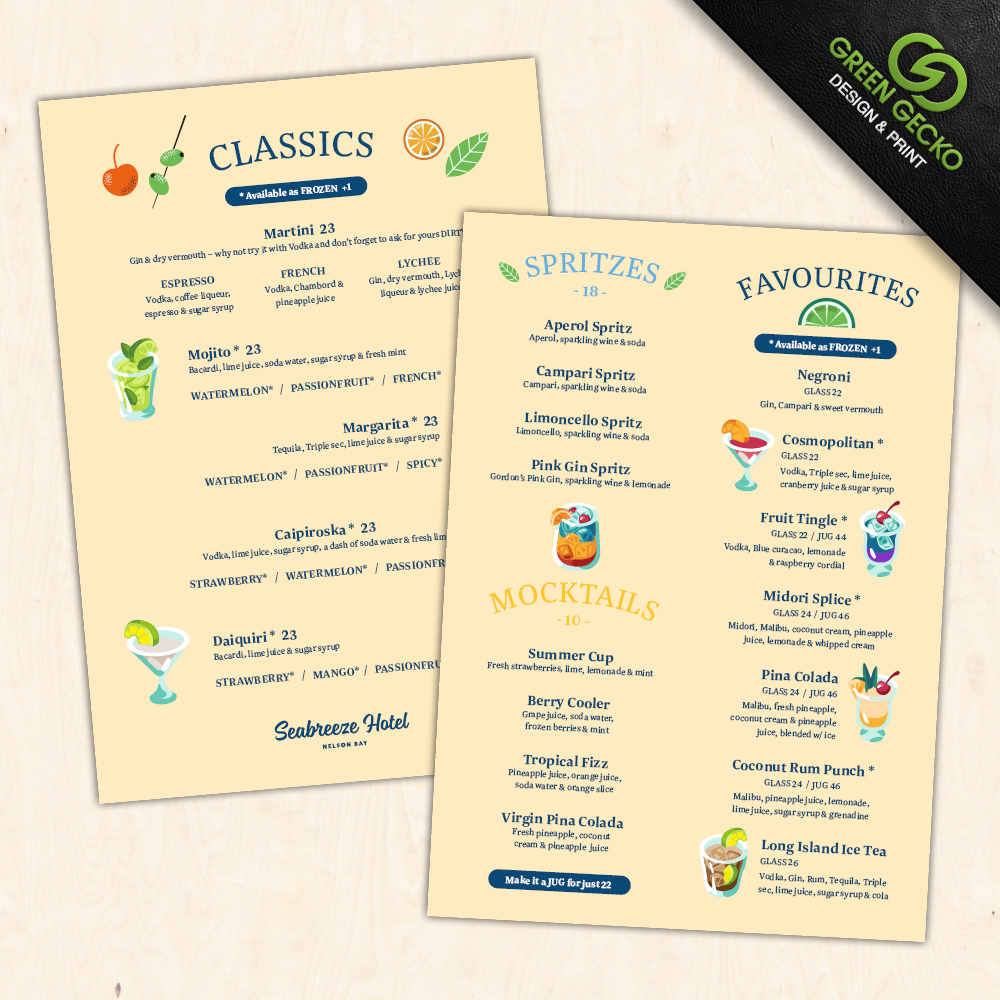 View Larger Image Cocktail Menu design for Seabreeze Hoteladmin2025-10-27T10:24:49+11:00 Share This, Choose Your Platform! FacebookXRedditLinkedInTumblrPinterestVkEmail